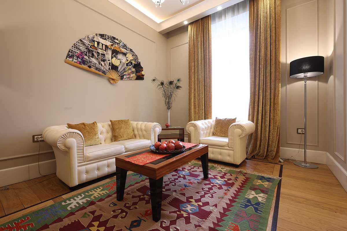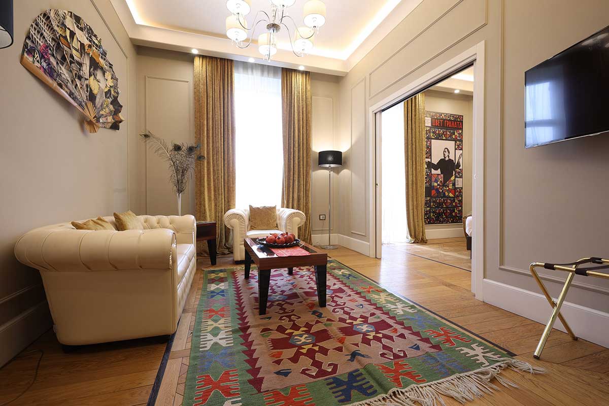 Famous Armenian film director and artist Sergey Parjanov lived in this modern and elegant suite in 1967, 1968, 1969 and 1973. Here you can find a spacious living room, private balcony. A smart TV, hot drink amenities, bathrobes, slippers and luxury toiletries are provided. A free Wi-Fi connection is also available. In the room, you can also find pictures of the famous artist and film director and a special tour can be organized to the house-museum.