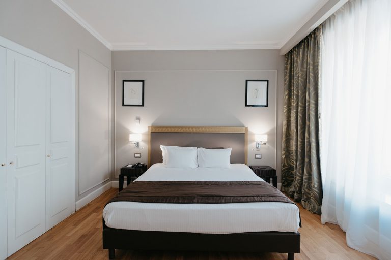 - Кровать: 1 большая двуспальная кровать (200 x 200 см) или 2 односпальные кровати